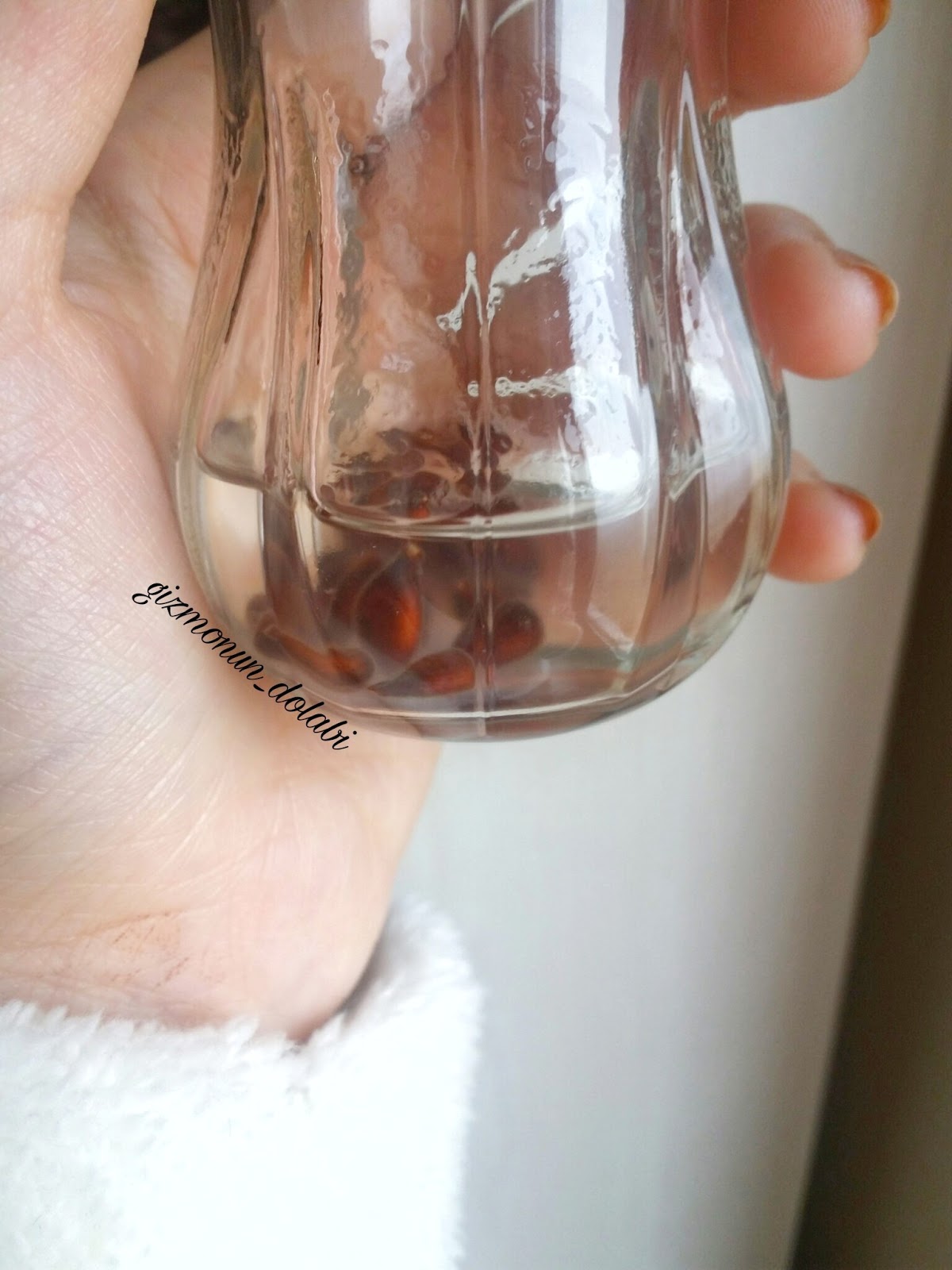 💓💓💓 Ayvamızı yarıya bölüyoruz genellikle ayvanın içinde 10-15 tane çekirdek oluyor zaten. Bu çekirdekleri suyun içine koyuyoruz ve 1 gün o şekilde bekletiyoruz. Maske jölemsi bir kıvam alacak.